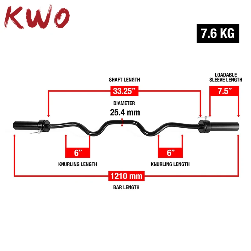 KWO Free Weights Gym Equipment Powerlifting Pull-up Super Curved Lifting Fitness Ez Curl Barbell Bar Steel Unisex Universal